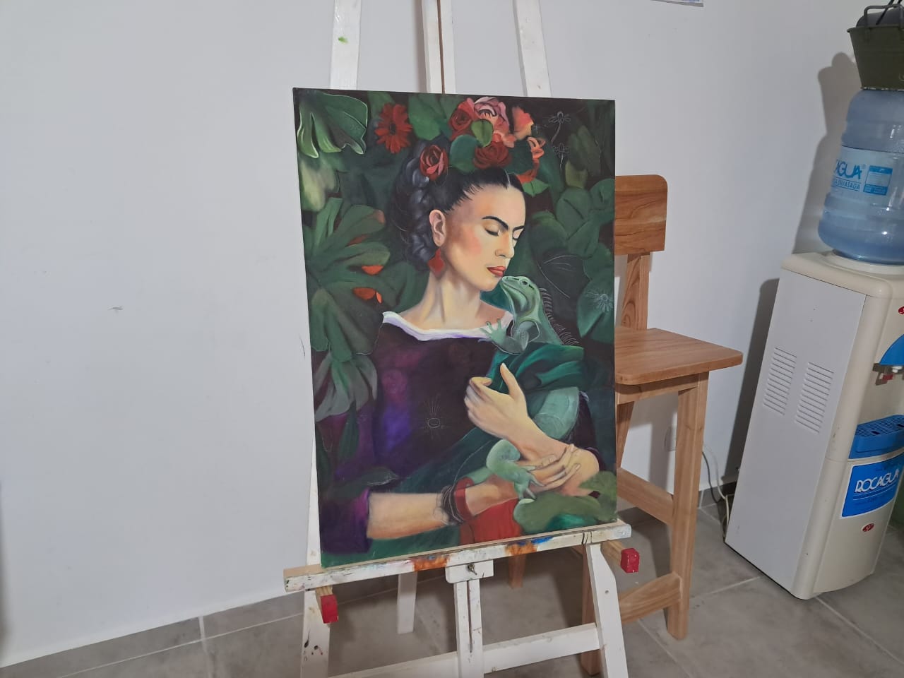 “Me parece perfecta la combinación de la vegetación, de las plantas, de las flores, de las hierbas, todo eso me parece que tiene que ver con el mundo femenino, y que la mujer lo utiliza muy bien, porque quién no ha visto a una abuelita en un jardín, quién no ha visto a una mamá teniendo una huerta para dar de comer a sus hijos, y ahí también me quiero quedar. Yo no sé transmitir de otra manera que no sea, como te dije antes, con mis elementos que son los pinceles”, continuó