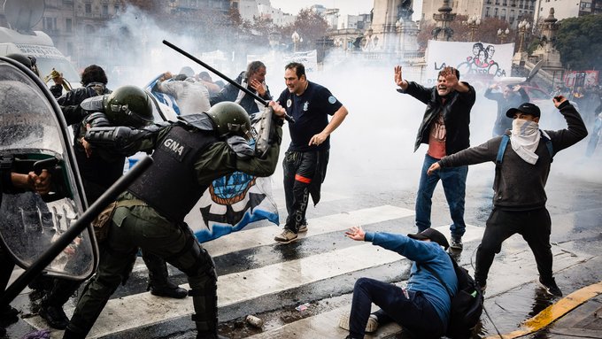Están los jubilados, los feminismos, los trabajadores que están sosteniendo los lugares de trabajo, la salud pública, la educación pública en el medio de todo esto. Todos luchando por mejores condiciones laborales.